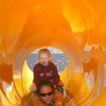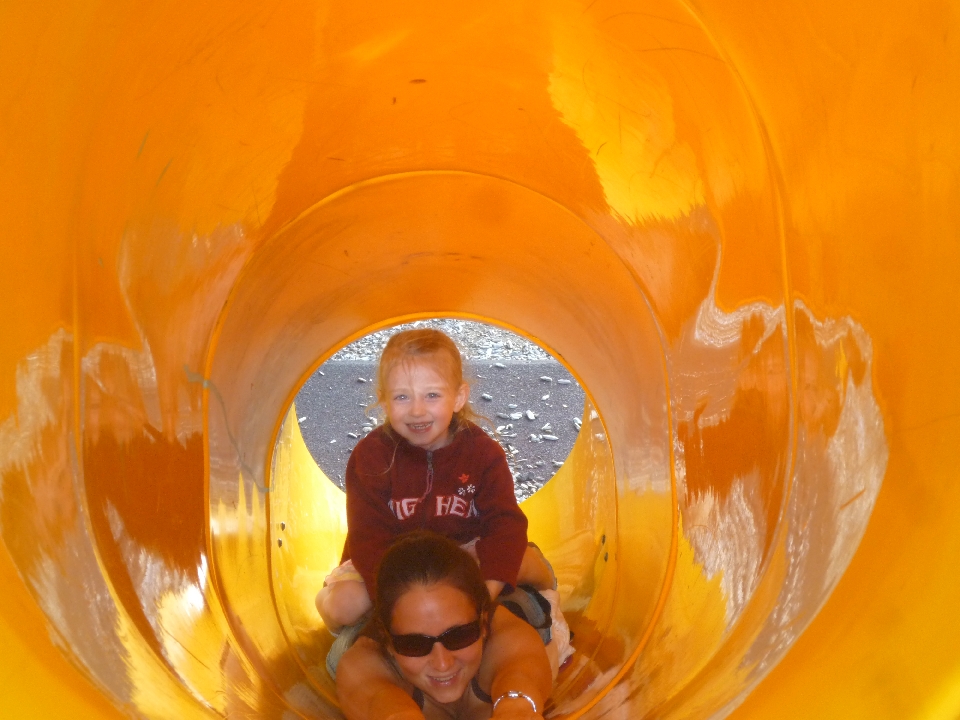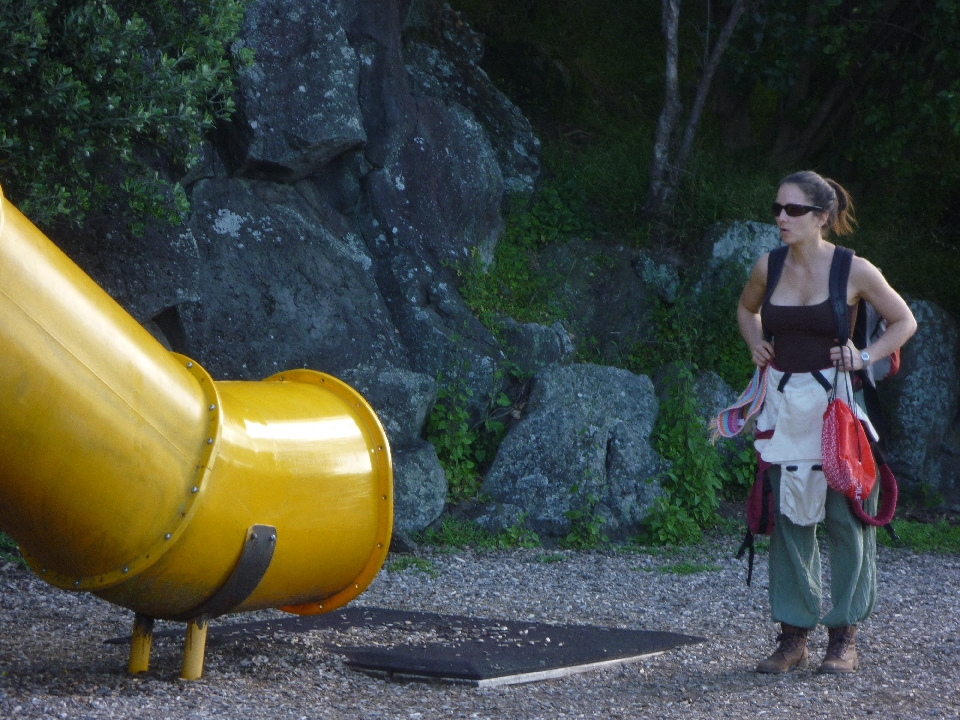 The kids were amazingly brave. We started of in the afternoon and the sun was still giving us a sunburn. Since it is still spring though, one cloud was enough to get the chills. In the evening we relaxed at a playground munching on crackers and apples again. The playground was lots of fun. We used the flying fox and several tubes enjoying ourselves. On the peak it was quite touristic. But the view was excellent and Clara made lots of pictures with her camera.