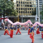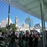 The “Farmers Chistmas Parade” heralds the christmas preperation period in Auckland. Whole Auckland is sitting on the siedways picnicing and watching the show. So did we.